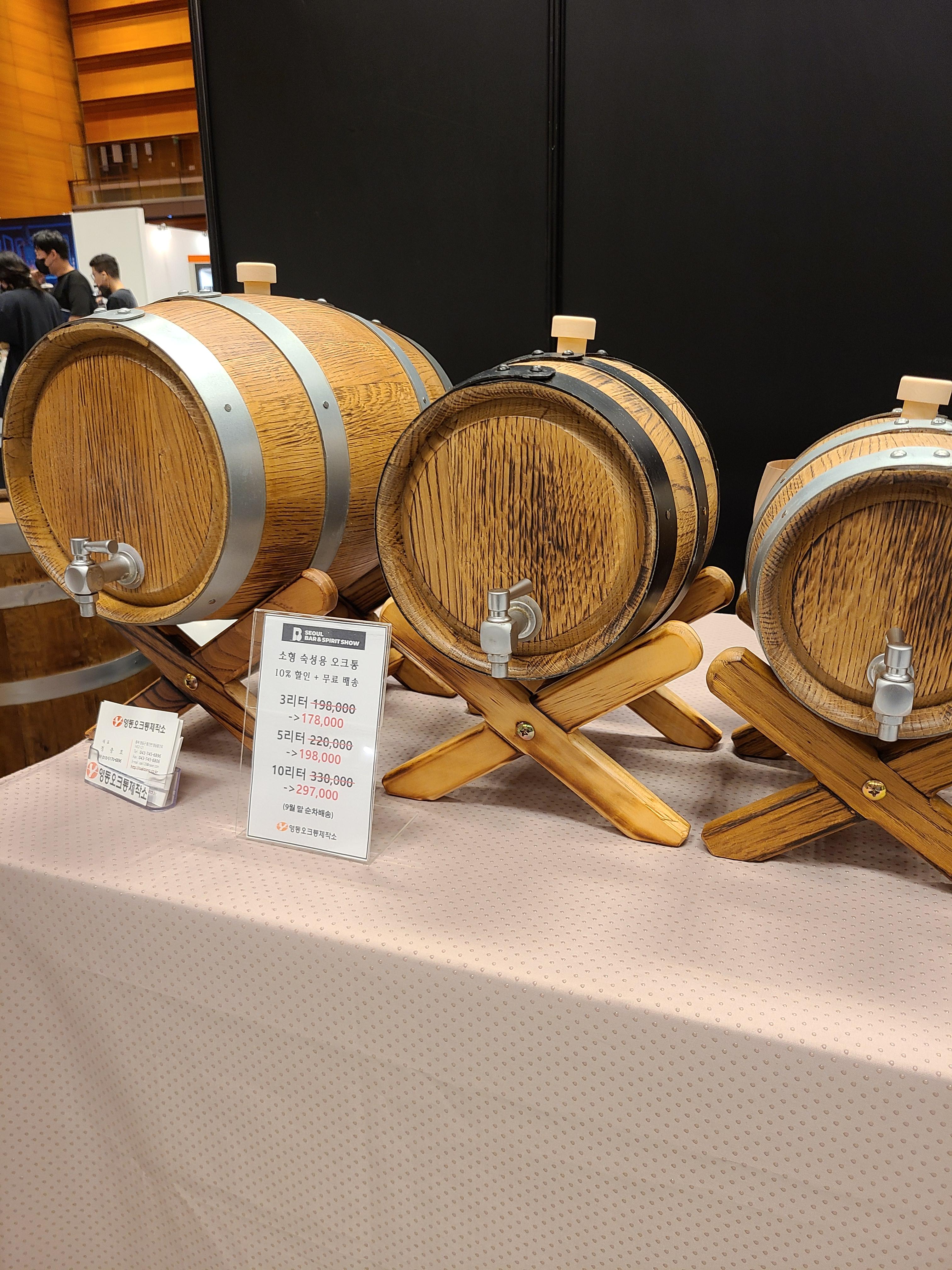 어떤 술이든 넣어서 오크통 숙성할 수 있는 미니 오크통이 있었다.