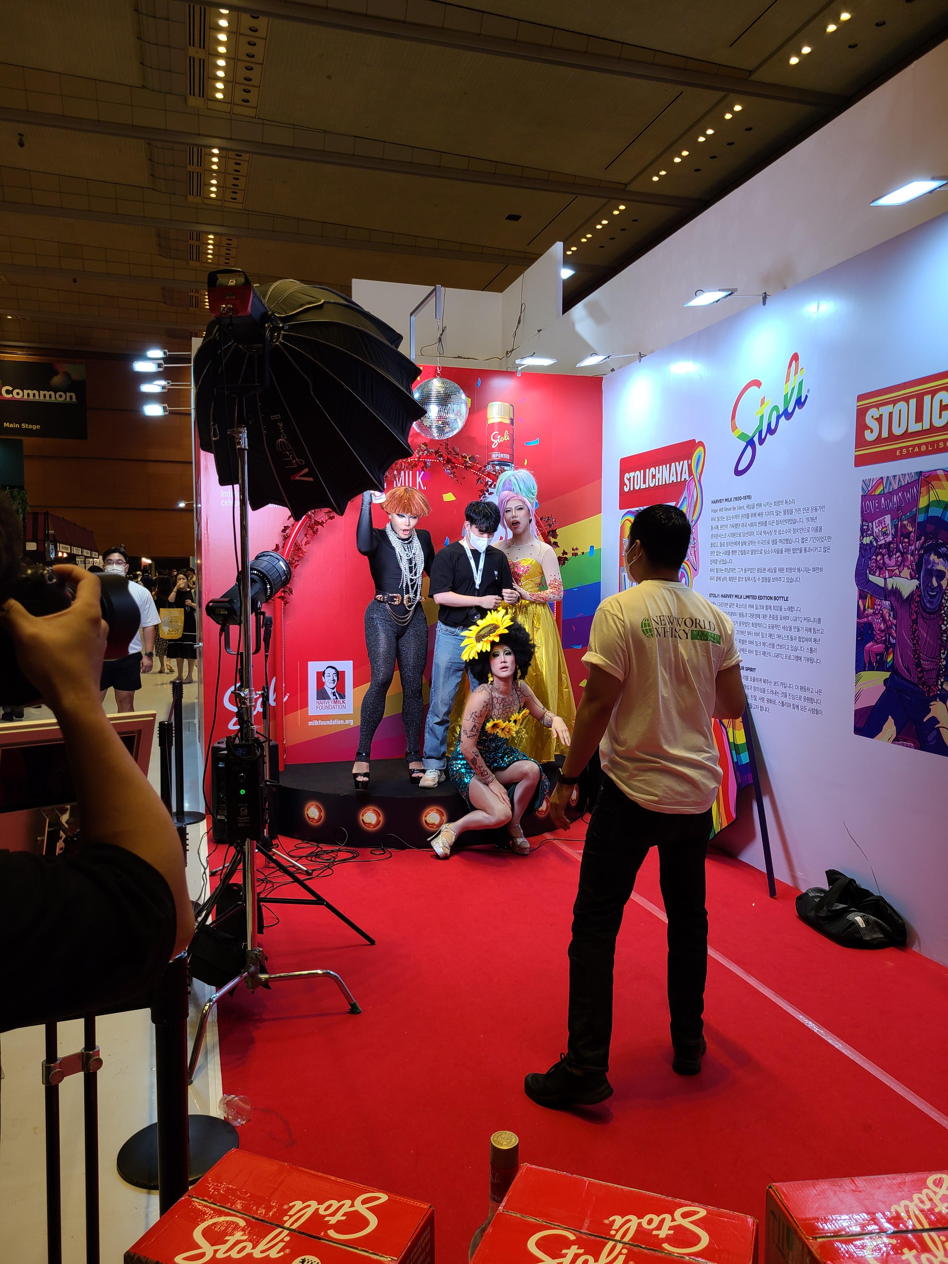 또한 시음하는 곳 뒤편에는 LGBT 운동가의 모습이 라벨에 그려진 보드카와 드랙퀸 분들과 함께 사진을 찍을 수 있는 곳이 있었다. 드랙퀸 분들을 처음 뵈었는데 유쾌한 에너지가 좋더라. 개인적으로 이번 박람회에서 메타베브코리아의 기획이 규모 적인 면이나, 참신함에서 가장 재밌었다.